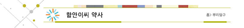 관향(貫鄕) 함안(파산)(咸安(巴山)은 선조(先祖)들의 세거지(世居地)이다. 2세(世) 문하시랑평장사(門下侍郞平章事) 청(淸)과 판도사판서(判圖事判書) 원(源) 형제(兄弟)는 시조(始祖) 이상(李尙)의 아들이고, 손자(孫子)인 3세(世) 문하시중(門下侍中) 홍(弘)과 중서평장정사(中書平章政事) 원수(元帥) 방실(芳實) 두 종형제(從兄弟)분이 함안이씨(咸安李氏)의 *1)현달(顯達)의 문(門)을 열었다.